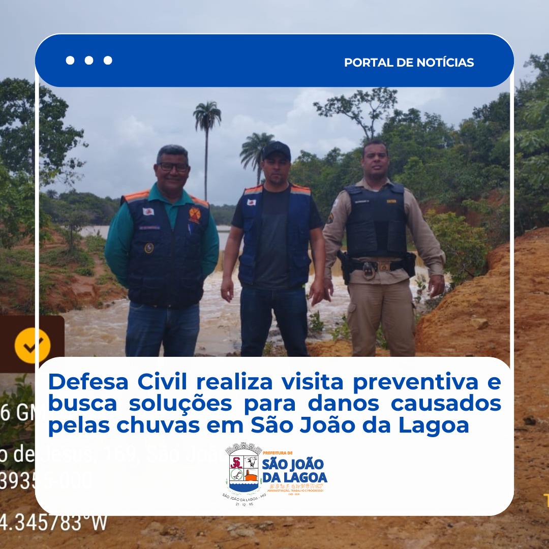 A Coordenadoria Estadual de Proteção e Defesa Civil esteve em São João da Lagoa, ao lado da Polícia Militar e da Coordenadoria Municipal de Proteção e Defesa Civil, realizando uma visita técnica com foco tanto na prevenção quanto na busca de soluções para problemas já registrados em razão das chuvas.
